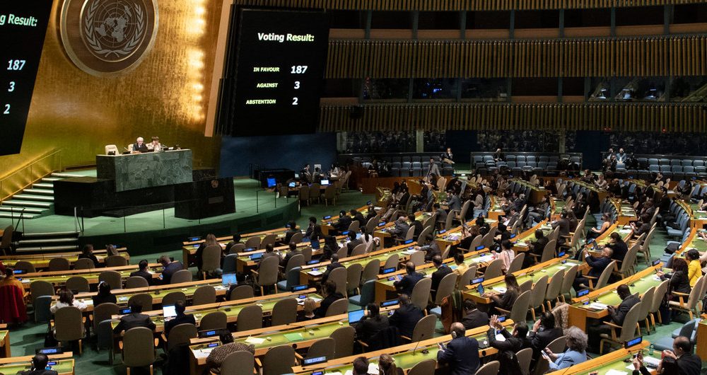 During a vote held on Thursday, 187 Member States underlined their support for the resolution while Brazil and Israel joined the US in voting no.